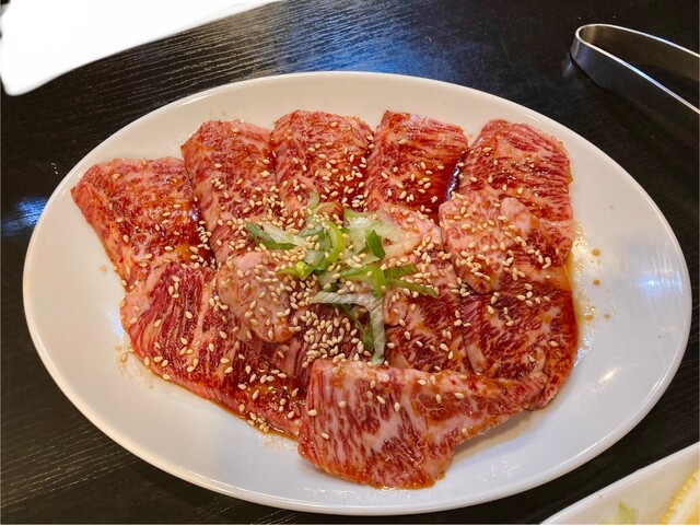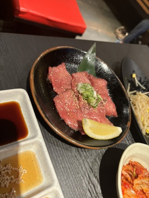 最初に頼んだハラミでも脂がしっかり!口に入れた瞬間に脂の旨みがたまりません。和牛の赤身好きにはたまらない一品あり、さっと焼いて食べると一口ごとに肉食べるなーと幸せな気分になりました。基本的には辛タレと塩のシンプルが選べて、味付けも強めなので個人的にはあまりタレは使いませんでした。食べ比べできたのも楽しかったです。お店の雰囲気は落ち着いてて清潔感があって、大人たちとワイワイ盛り上がるには最高でした。...