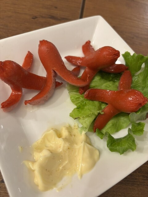 でもなんか飾ってなくて、表にはいきなりおにぎりとかたこさんウィンナーとかの写真が貼ってあります。