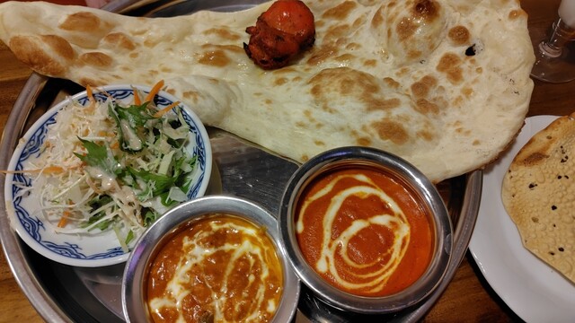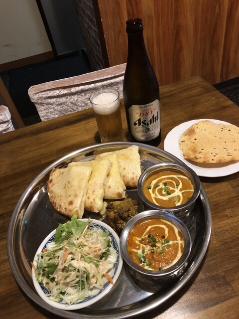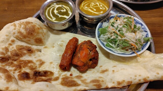2回目の訪問です。初めて行った時にボリュームもあり、凄く美味しかったので母と再訪しました。 私は辛いのが食べられないので、ほうれん草の海老カレーは甘口、他シーフード・キーマとチキンカレーは普通にしました。ナンが大きく、羊(ちくわみたいな形w)とチキンもスパイシーで美味しかったです。 再訪確定ですが、ボリュームがあるので次回はランチにします