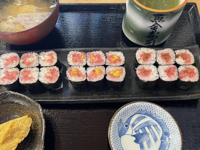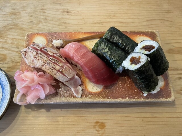 6.10.11 久しぶりに魚金寿司すゞ木さんに伺いました。 2ヶ月振りかな。 つまみを少し頼みましたが、今日のメイン イベントは細巻きの海苔巻きです。 トロタク(中トロとタクワン) ネギトロ(中トロとネギ) ナラトロ(中トロと奈良漬) 海苔巻き(干瓢と山葵) 中トロ... 詳細を見る