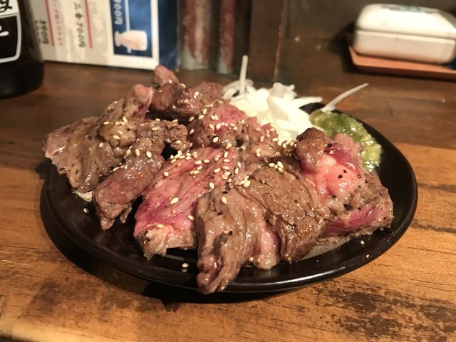 お客様さんのおすすめでおつまみローストビーフをいただきました。普通のローストビーフとは違い、焼肉のユッケ感が有り、まさしくビールに最高に合う一品だと思いました。無くなる前にまずは頼んでみてはいかがでしょうか。