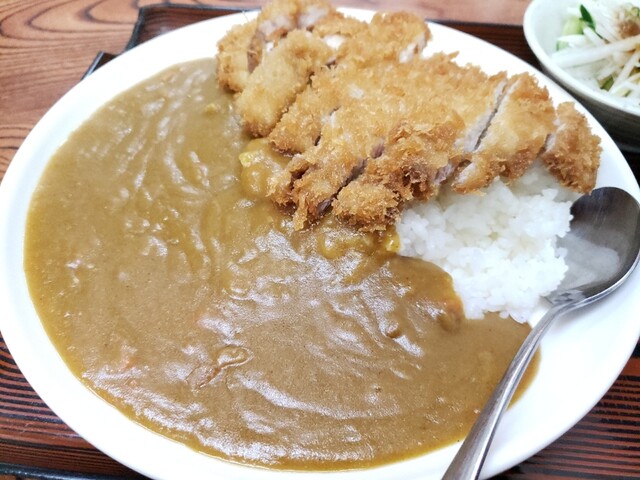 日曜日のお昼に再訪。 前回、他のお客さんが食べていたカツカレーが美味しそうだったので、席に着くや否や注文。 メニューをチラリとすら見ずに注文すると常連っぽくていいですね。ま... 詳細を見る
