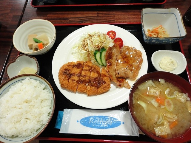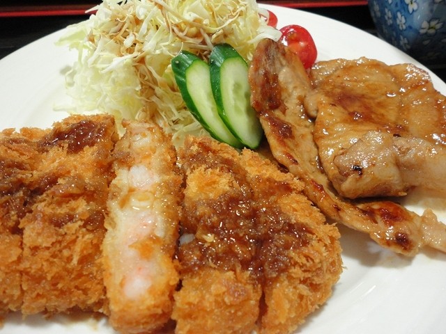 「エビカツ・ロース生姜焼き定食」900円を注文。