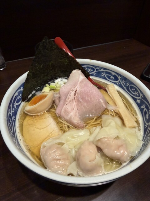 平日1330頃の到着でしたが並びなく入れました。 醤油ワンタン麺に特製トッピングを注文。 言葉にすればそれだけなんですが、 実際に箸を入れスープをすすった瞬間、 甘みと... 詳細を見る