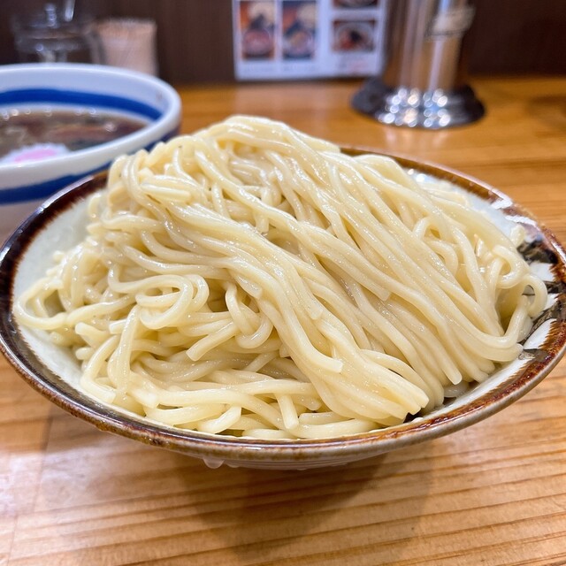東池袋大勝軒系統で、今期のラーメン情報誌TRY名店つけ麺濃厚部門で3位に入っているこちらのお店 日曜日13時10分到着で7人待ち 20分位待って入店出来ました デフォルトでも麺量が多いとの口コミがあり 店員さんに聞いてみると、もりそばで茹で前300g 中華そばで茹で前250g 中盛で各々... 詳細を見る