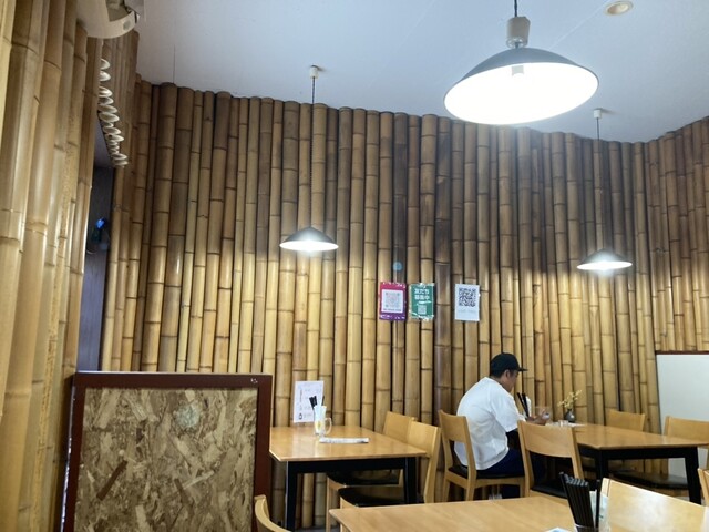 志村坂上から徒歩10分強、不安になるほど住宅街の中を突き進んで行くと、ありました小ばやし食堂。「林」をひらいて仮名表記にしたのは検索ヒットされにくくする意図でしょうかそれとも林ではないのでしょうか。しかし内装は中国の竹林の中にいるようです。