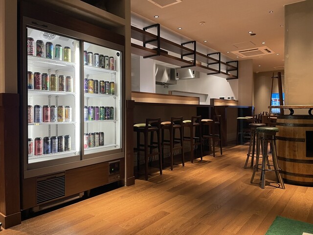 カウンター6席、樽のハイテーブル2席、ゆったり座れるテーブル2席(最大4人まで)があります。