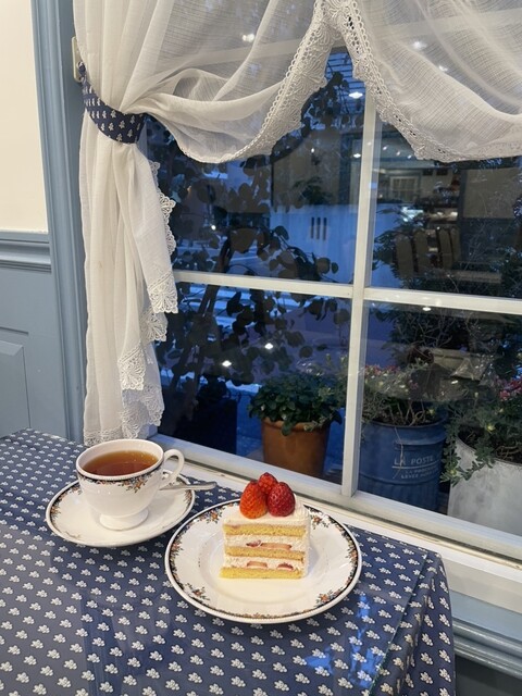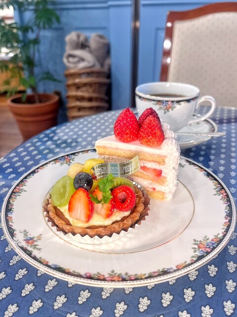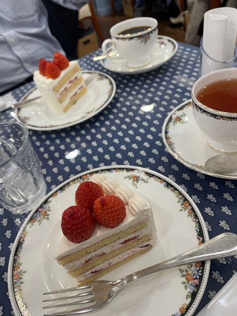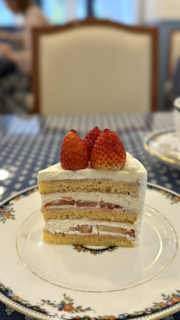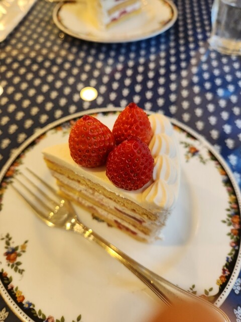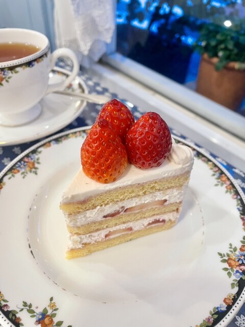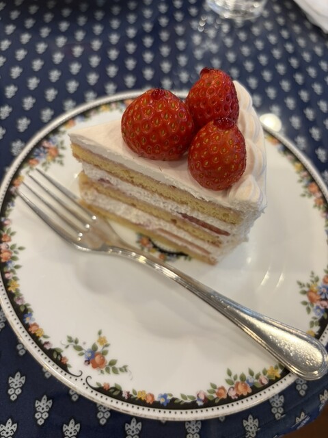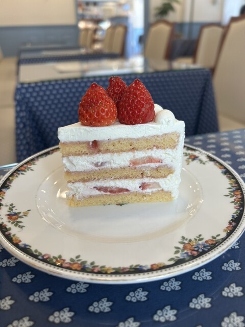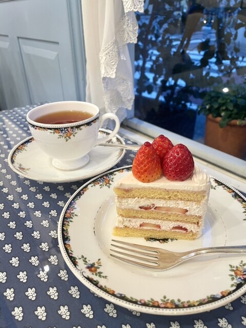 ショートケーキをいただきました。あっさり上品な甘さで、苺もケーキに合う酸味が強めのものを使用されてました。店内は青と白を基調とされていて、統一感があります。食器はウェッジウッドで、可愛らしいです。ケー...