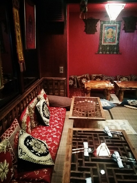 テーブル席の他に、ネパール風の小上がり席がある。 |
