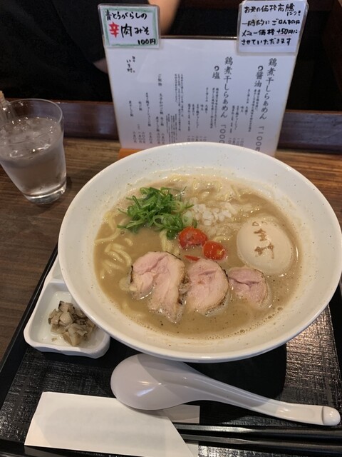 この日は仕事で板橋区の方へ。 お昼時もだいぶ過ぎていましたが、通し営業で煮干し系やってるお店ないかなーと探したところ、いま村さんを発見し、移動のタイミングで途中下車して訪問。 こちらは鶏煮干しのらーめん専門で、席で注文&会計システム。 醤油と塩があり、醤油の大盛りと煮干しご飯を注文。 ... 詳細を見る