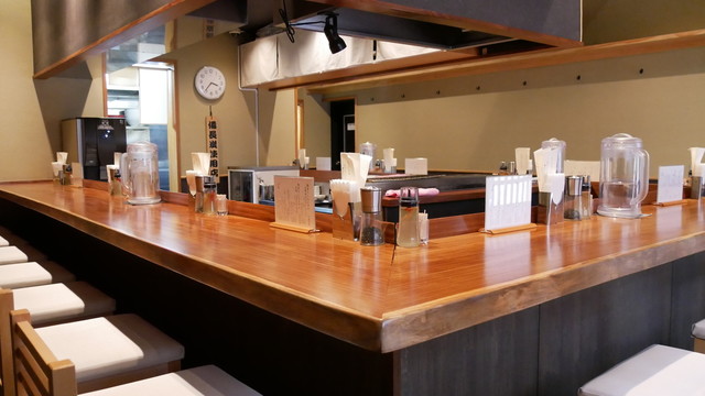 18席 (店内はカウンターのみの和風居酒屋風な佇まいです) |