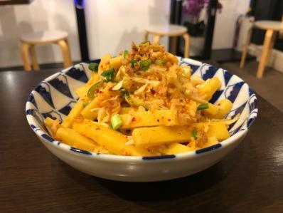 チェーオーシーチェは春雨?に肉団子や内臓が入ってたっぷりのフライドニンニク...