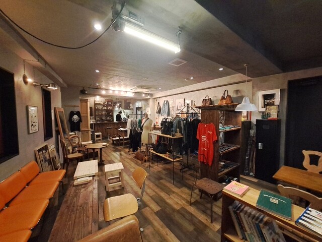 ビルの2階にある、革製品の販売とカフェを兼業している店。