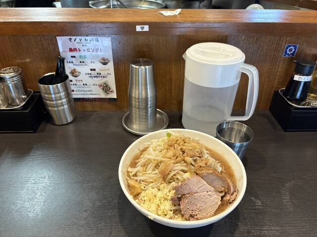 2025年3月にオープンした俺の生きる道系統の二郎インスパイアのお店 俺の生きる道は外さないので安心して訪問出来ますね 平日19時20分到着で混雑は無し 店内は狭めでカウンター6-7席位しかなかったかな <ラーメン麺300g 厚豚1枚 1100円> コールは全マシ 野菜の盛りも良く迫力の... 詳細を見る