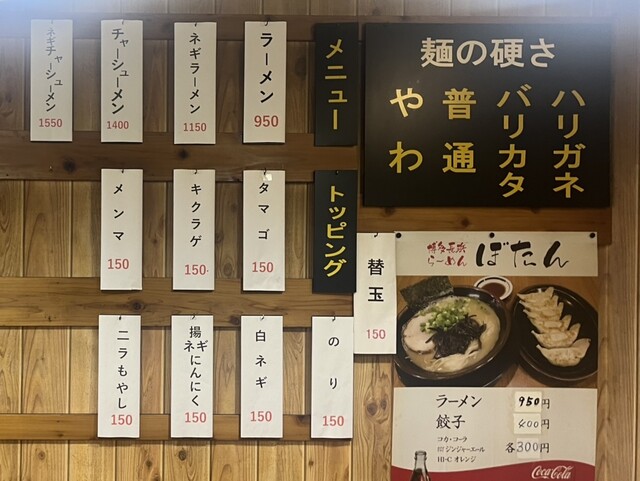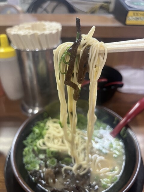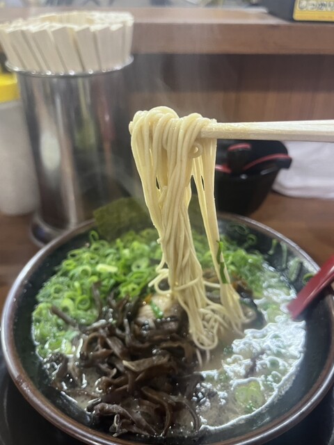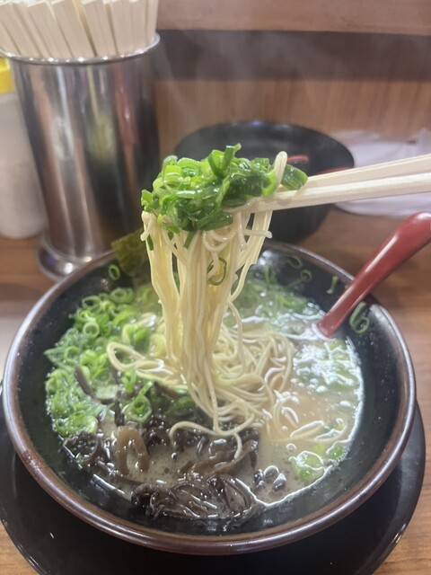 注文はあらかじめ考えて来た。一応店内の壁にあるメニューを確認して“ネギラーメン”と“小ライス”を注文。麺の硬さはバリカタにする。博多ラーメンは替え玉が本来の注文方法なのだろうが、私は豚骨スープを味わうのにご飯が欠かせないと思う。亜流かもしれないが自分の好みで食べさせてもらう。