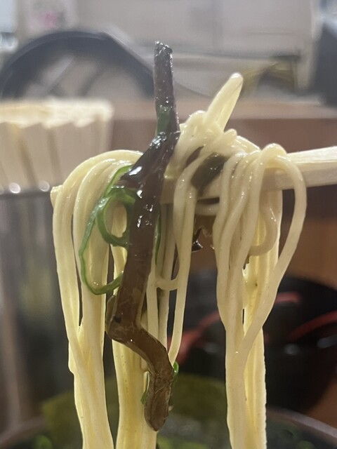 次にラーメンを啜る。麺はバリカタなので少し食べるのに時間的余裕がある。ストレート細麺をスープを絡めて音を立てて啜る。ズズズ!旨い。