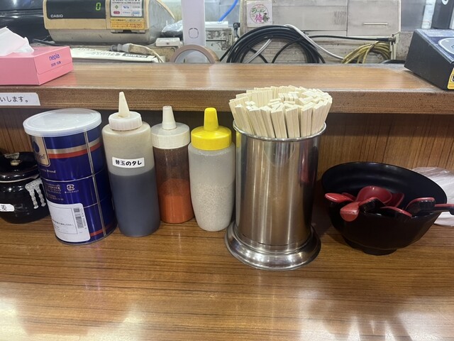 その後も少しブラブラして『ぼたん』に戻る。ちょうど「準備中」の札を「営業中」にひっくり返しているタイミング。一番乗りで店に入る。「カウンターのお好きな席にどうぞ」と言われ端の席に陣取る。
