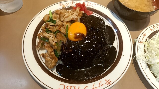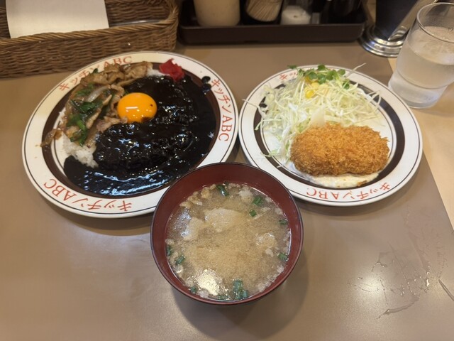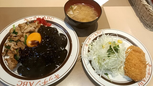 オリエンタルライス&黒カレーセット(カニクリームコロッケ付)をオーダーしました キッチンABCの中でも、個人的に好きなメニューが一度に2つとも食べることの出来るのは嬉しいです! オリエンタルライスは、豚肉とニラを特製にんにく醤油タレで炒められたもので、にんにく醤油タレが食欲をそそり卵黄を絡め... 詳細を見る