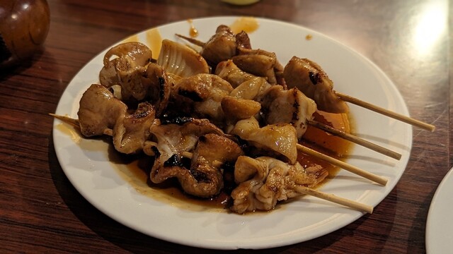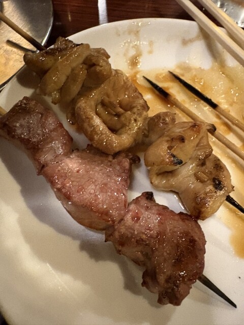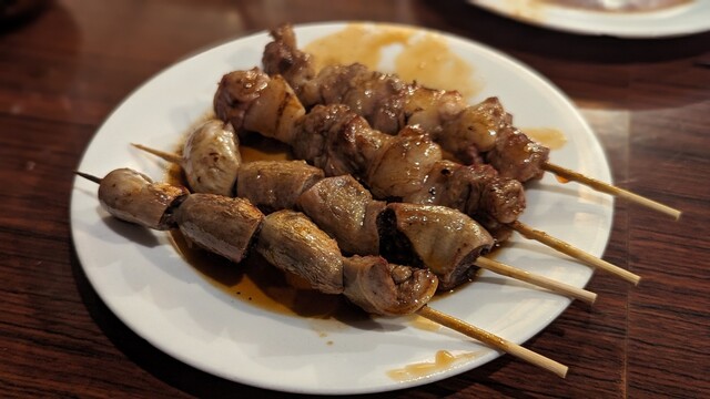 串に刺さっているモツ...
