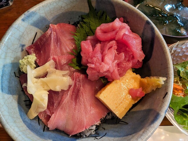 この前訪問したところ、ランチ終了していたので 早めのランチ時間に訪問。 まぐろ丼にもたくさん種類があり、迷いつつ まぐろ中トロネギトロ丼1000円を注文。 先にサラダが出て... 詳細を見る
