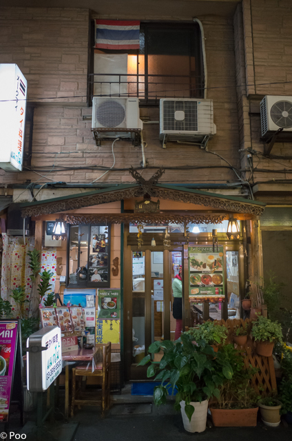 平日金曜日14:00、大塚駅から2,3分の商店街の中にありました。店頭の立て看板にはメニュー写真が所狭しと貼り出され、この一角だけ雑多な東南アジアの雰囲気です。チラッと外から覗いて見ますと、中も狭くて、ごちゃごちゃしてて、一瞬入るのを躊躇するお店です。