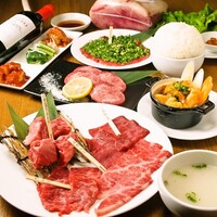 黒毛和牛A5ランク使用!希少部位2種+本日のオススメホルモン、〆にスープやデザートが付いたフルコース!量も質も求めている方にオススメのコースとなります。