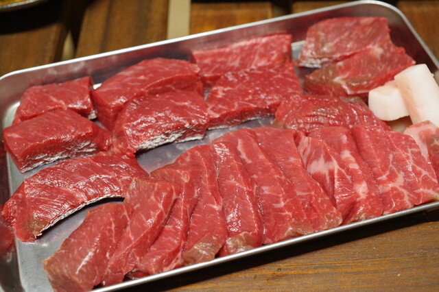 最初に提供されたのは 肉刺しの盛り合わせ。