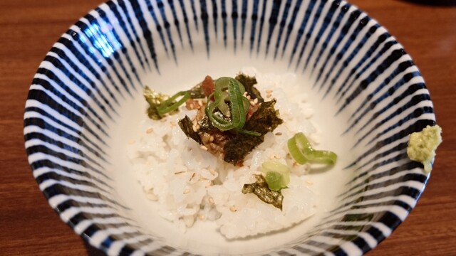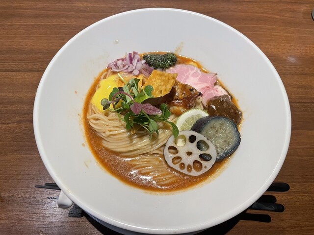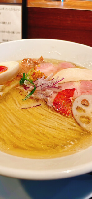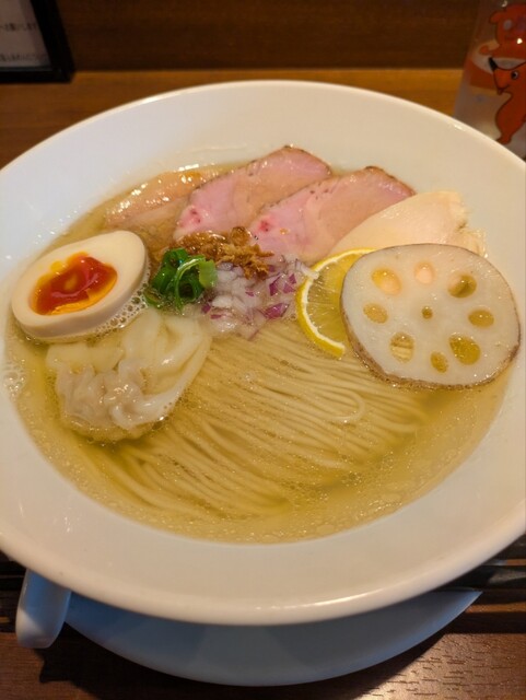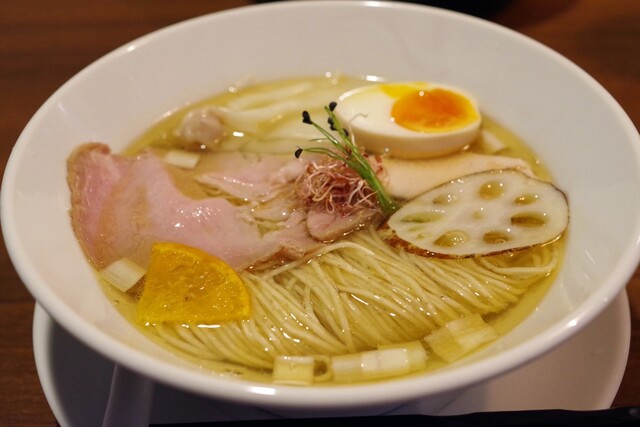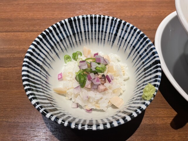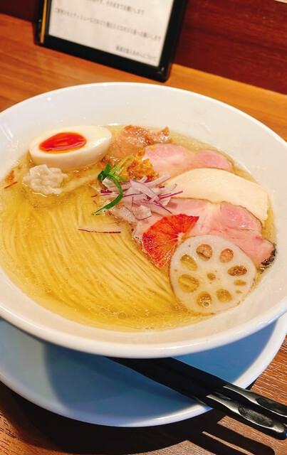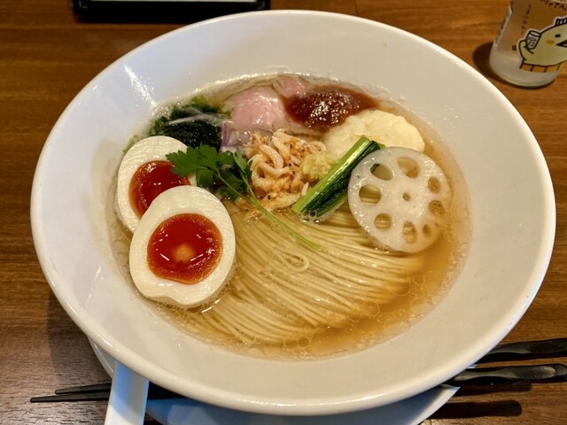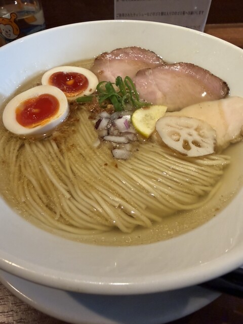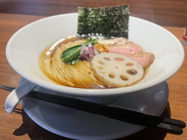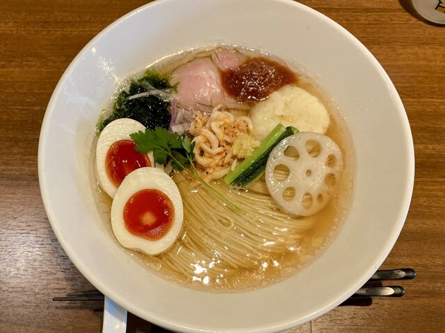 平日12:40、先客2名。後続ありつつも満席には届かず。 今週限定の寒鰤と冬大根のらあめん1400円+お茶漬け用ご飯150円を注文。 丁寧に作る姿をカウンター越しに見つつ、... 詳細を見る