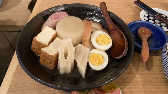 全席喫煙可◎当店は定番・変わり種のおでんや、おでん出汁で炊く釜飯、豊洲直送の新鮮なお刺身、季節にあった日替わりメニューといった豊富なラインナップのおつまみをご用意しています。季節ごとに変わるこだわりの日本酒や金宮焼酎で色々楽しめるドリンク類も多彩に取り揃え、有名な漫画などが飾られた店内はアニメカルチャーを感じる空間が広がります。雰囲気・料理ともに"エモさ"を堪能ください◎
