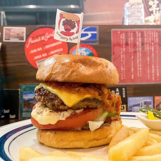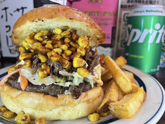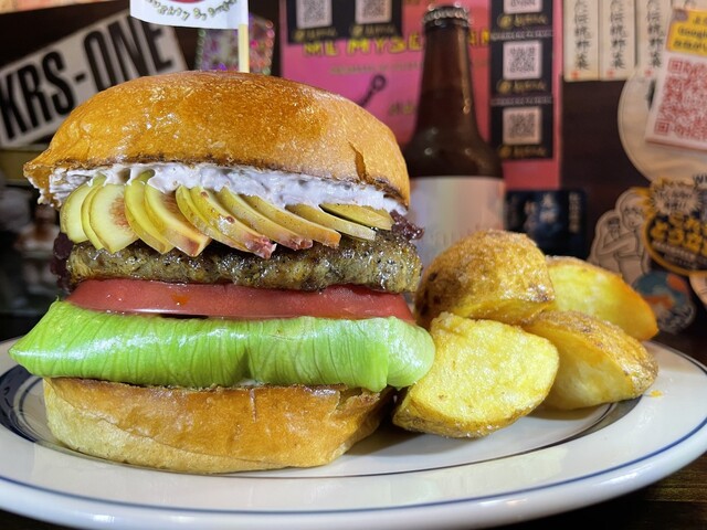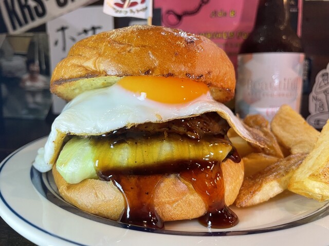 仕事の途中の昼食。店内は6席ぐらいあって満席。店内でFMが流れている。自分は好き。たまたま並ばずに入れる。ベーコンバーガーを注文。牛か鶏で選べるので牛で注文。ポテトとドリンクで+500円。意外とすぐに食べ始められてうれしい。大きくて食べ応えあり。レタスが予想以上に甘くておいしい。レタスとお肉とベーコ... 詳細を見る