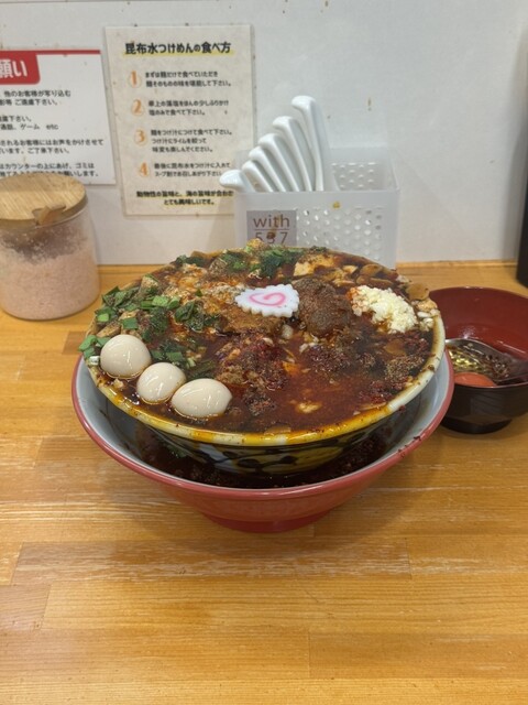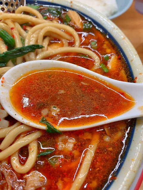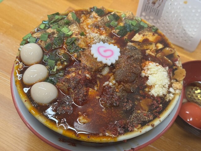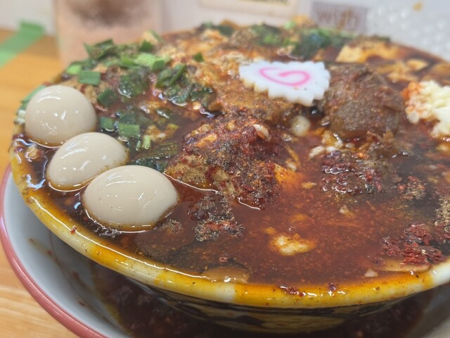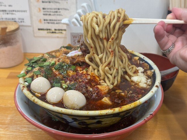 旨辛痺麺(辛口)1,250円、ライス150円、真っ赤卵ポン玉100円(現金)、まさお(ウズラの卵3個)60円、紙エプロン10円 寒すぎて体が温まる辛いものを求めて18時過ぎに訪問!有楽町駅護国寺駅から歩いて5分ほどのお店です。店内はすでに満席で外待ち5人。先に食券を購入して外で待ちます…(寒い)... 詳細を見る