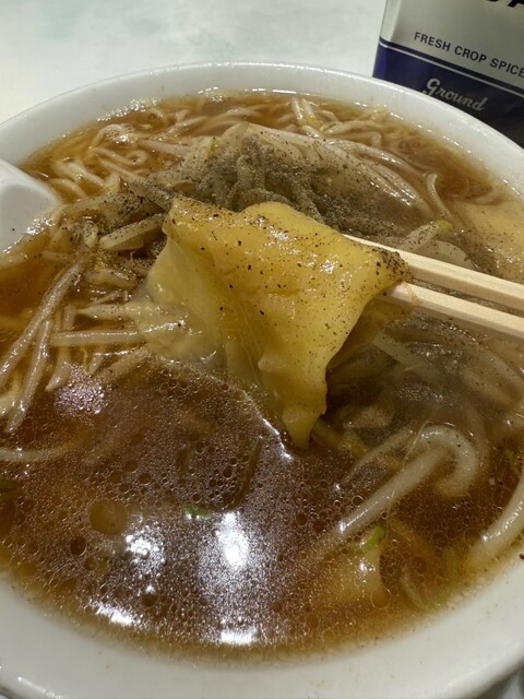 一緒に行った友人が常連で、そのお薦めに従ってワンタン麺を注文しました。