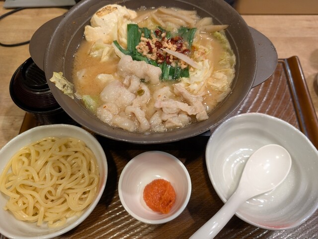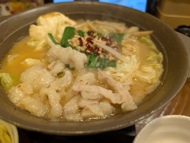 味噌仕立てのモツ鍋、ちゃんぽん麺付を注文。