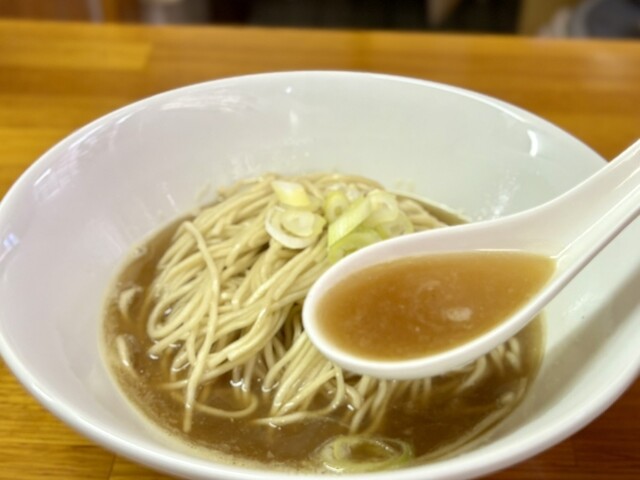 ここは歴代のラーメン屋でもトップクラスで好きです。具がネギだけでも、煮干しのパンチがあります。この味がやみつきになり、ふと帰りによってかしまいます。麺も独自の歯応えがあり、はまります。会社帰りに定期的...