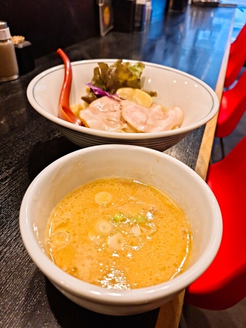 2025/5/5(月)8:18着 先客1名のみのためそのまま店内券売機で食券を購入して着席 本日のオーダーは ・鶏白湯濃厚つけ麺 1000円 食券を渡すと釜揚げ(熱盛... 詳細を見る