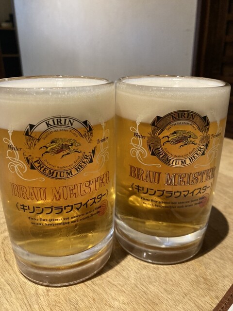 少し串焼きとアテを出してもらってビールをいただきました〜(^。^)