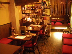 カウンター5席、テーブル3卓、座卓1卓のお店です。