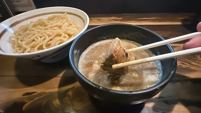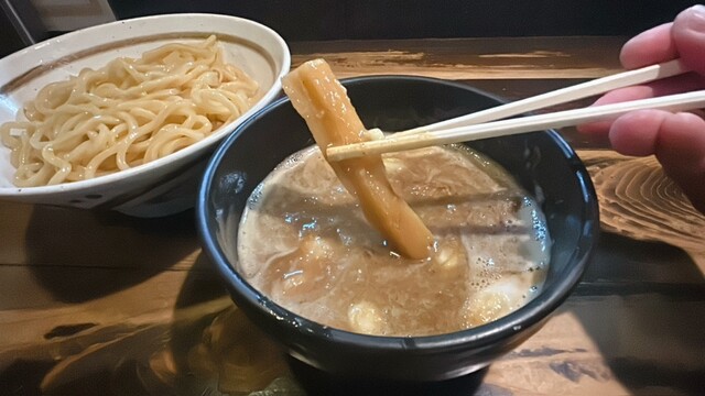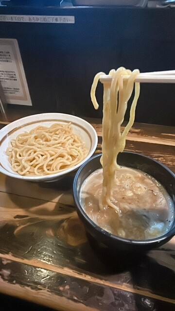魚介つけめんがメインのようですが ゴマ好きなので、こっちにしました。 ◎京介ごまだれつけめん ¥1200 麺は中太。 つけ麺としては 細い方ですが このくらいが一... 詳細を見る