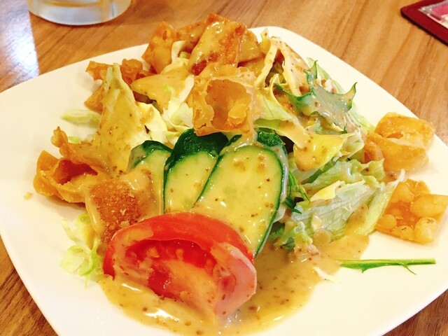 四川風ときくと辛そうなイメージだったけど、ひとくち食べてみると、辛さはかなり控えめ。だけど、調味料とスパイスが絶妙なのだろう、複雑で奥深い味わい...