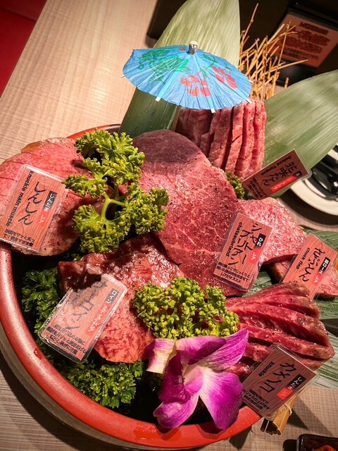 1番好きな焼肉屋です。引っ越して遠くなりましたが、食べにきてます。 ◾️頼んだもの 希少部位7点盛り…上タン塩、サーロイン、リブ真、かめのこ、サガリ、ランプ、げた ハラミペア盛り…特上ハラミ、上ハラミ まるちょう 切り落としカルビ にんにくオイル焼き 白菜キムチ ユッケジャンスープ…... 詳細を見る