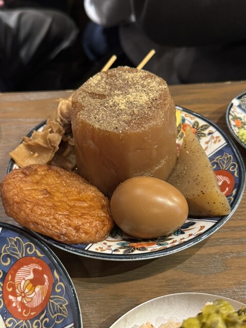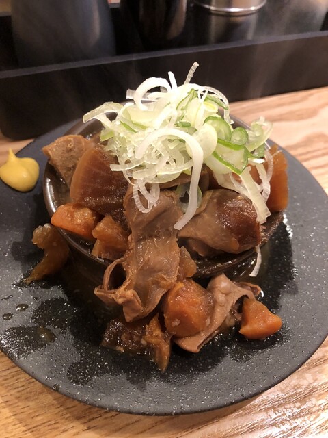 お通し 【鬼おろし大根】319円 柚子の香りがふわっと広がって爽やか。粗めの食感も心地よくて、箸が止まらない美味しさ。しかもこれ、おかわり自由なんて素晴らしい!! 【ごま塩レバー】495円 まずは“レバ刺し風”の「ごま塩レバー」。 低温調理で仕上げたレバーは、ねっとりとした舌触り... 詳細を見る
