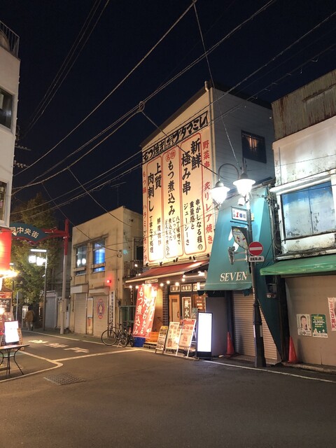 場所は赤羽中央商店街です。味噌もつ煮と新鮮な肉刺しが名物のやきとん店です。