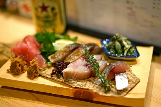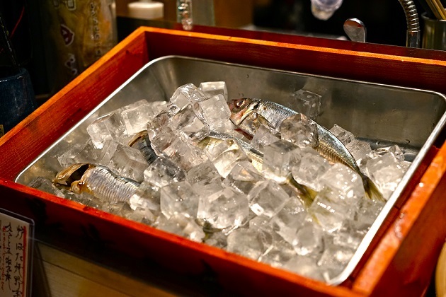 「炉端焼」や「ひかりもの」で楽しむ豊富な鮮魚類。ご予約はお電話にて受け付けております。