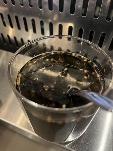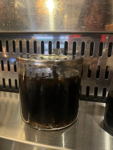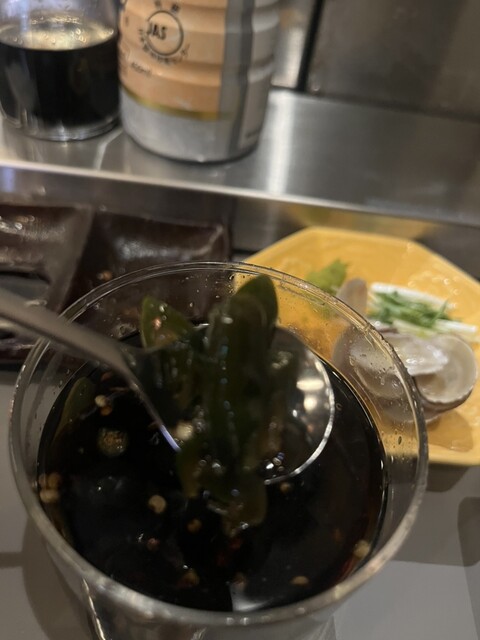 お鍋と一緒に出てくるしょうゆだれのようなものは、青唐辛子のビネガーぽい手作り調味料