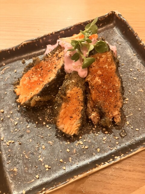“ちょっと違って、ちょっと良い”を掲げる大人向けの隠れ家酒場。JR赤羽駅東口から徒歩数分、テラス席やゆったりしたテーブル席も備え、普段使いからデートまで振り幅が広い。名物はSNS映えも意識した「サーモ...
