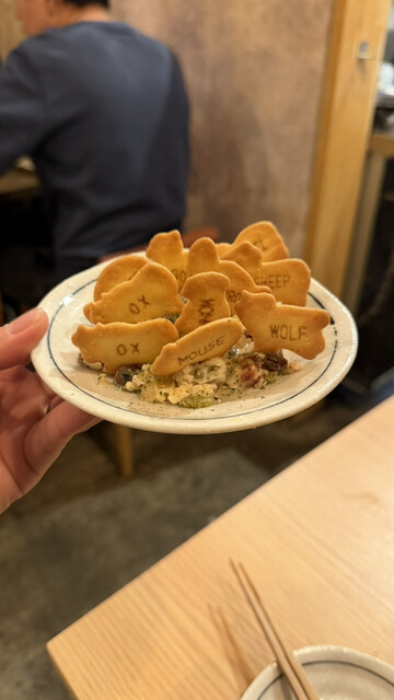 お店の場所に少し迷ってしまいましたが、迷わずに行けば赤羽駅から徒歩5分圏内かと思います。他にも注文しましたが、写真のお料理はたべっ子どうぶつのビスケットとチーズの相性も良くお酒のつまみとして美味しかっ...