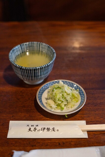 4代目店主若林喜久雄に受け継がれたこだわりの伝統の味。当店の天丼は、サクッとした食感の天麩羅と、長年継ぎ足しで守られてきた濃い口のタレが食欲をそそる、なんとも食べ応えのある一品です。特に主役の穴子に関しては、店外に専用の水槽を設け、朝〆に徹底することで、その鮮度を保っております。店内には、お座敷席とテーブル席をご用意。歴史の趣深い空間で、食材・油・タレの全てにこだわった天麩羅を、どうぞごゆっくりと...お楽しみ下さい。「土手の伊勢屋」は商標権を有しており、系列店及び支店は一切ございません。当店でしか食べられない伝統の味をぜひお楽しみください。