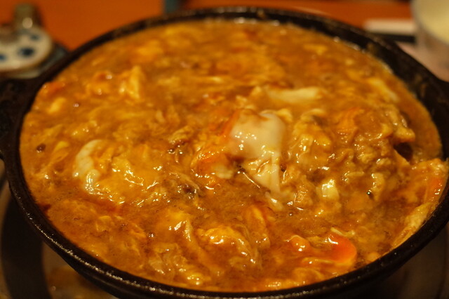 ・馬肉の中落ちと朧豆腐の卵とじ、ご飯