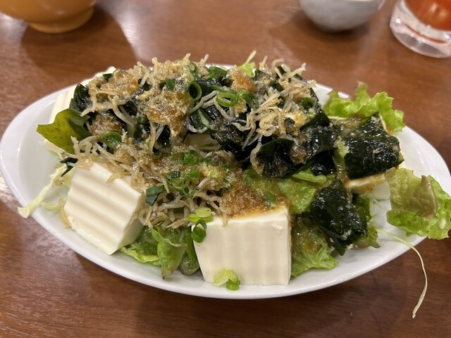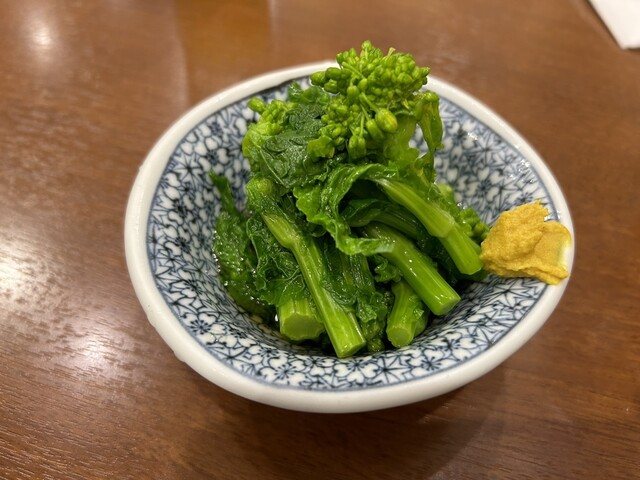 じゃこと豆腐、ワカメのサラダは、ボリュームたっぷりで、ドレッシングもよく合っていて美味しかったです。春の季節ものの菜の花も置いてあるのが嬉しくて辛子和えも頼みましたが、これまた美味しかったです。