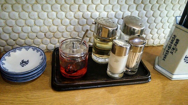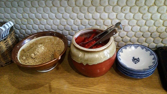 カウンターのコンディメンツには、お馴染みの摺ったゴマが。